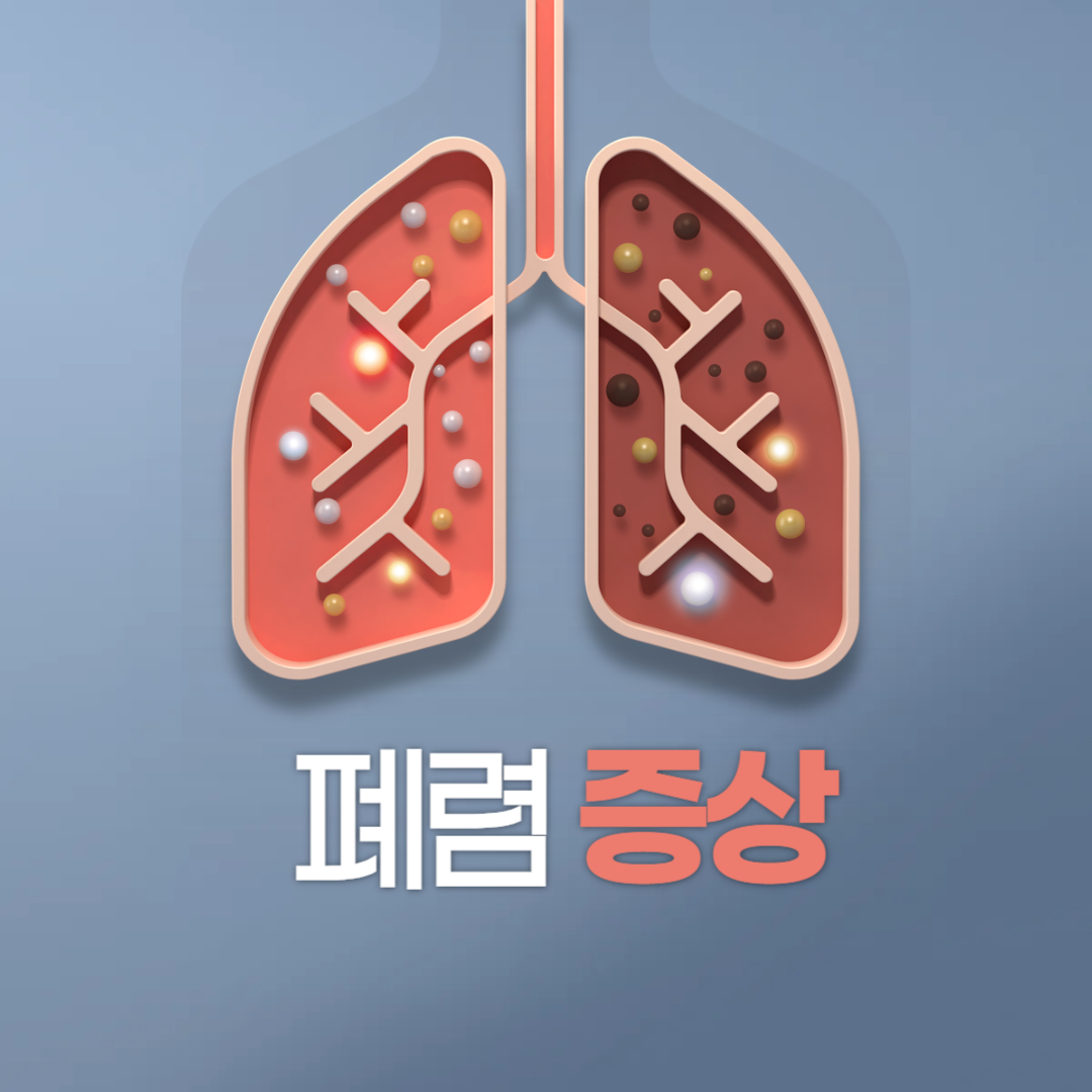 폐렴은 감기나 독감과 비슷한 증상으로 시작되지만, 더 심하고 오래 지속됩니다. 그러므로 감기 증상이 3~4일 이상 지속되거나 악화된다면 폐렴을 의심해야 합니다. 폐렴 초기 증상은 감기와 비슷하게 마른기침 또는 가래가 동반된 기침, 미열 또는 고열 (38~40℃), 오한과 발한, 피로감, 근육통, 두통, 식욕 감소 등으로 감기처럼 가볍게 시작되지만, 시간이 지나면서 증상이 악화됩니다. 폐렴이 점차 진행될 때 나타나는 증상에는 가래의 색이 누렇거나 녹색 혹은 피가 섞일 수도 있으며 심한 기침, 호흡 곤란 (숨이 차고 빨라짐), 가슴 통증 (특히 숨을 깊이 들이마실 때 통증 발생), 입술이나 손끝이 파랗게 변함 (청색증), 심한 피로감과 의식 저하 등이 나타날 수 있습니다. 고령자는 뚜렷한 기침 없이도 무기력, 혼돈(의식 저하) 증상이 나타날 수 있어 주의해야 합니다.